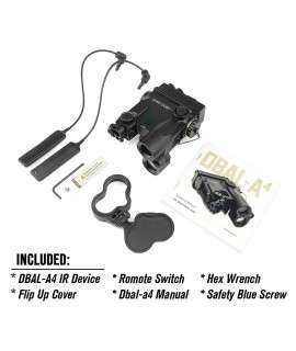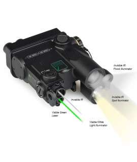 The advanced DBAL-A4 has four functions: visible laser pointer(red laser/ green laser), infrared laser pointer, infrared spot/flood illuminator, and bright white tactical light. High/low modes.