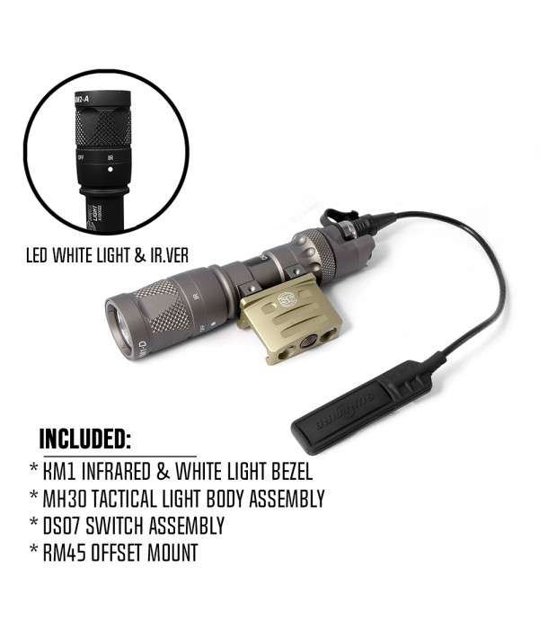 The M312V Scout Light is lightweight and compact, but it’s tough as nails. In white-light mode, its recoil-proof LED generates a night vision-disorienting 180-lumen tactical beam. Its TIR lens focuses the light to give you the reach you need for positive target identification plus the spill you need to maintain situational awareness. In infrared mode, its 80-milliwatt LED beam is invisible to anyone not wearing NVGs. And you can switch between the two by twisting a no-look, self-locking selector ring on the bezel. The M312V’s integral low-profile RM45 mount positions the light in the offset position between the rails of a MIL-STD-1913 (Picatinny) forend, decreasing overall weapon profile and limiting potential snag factor.